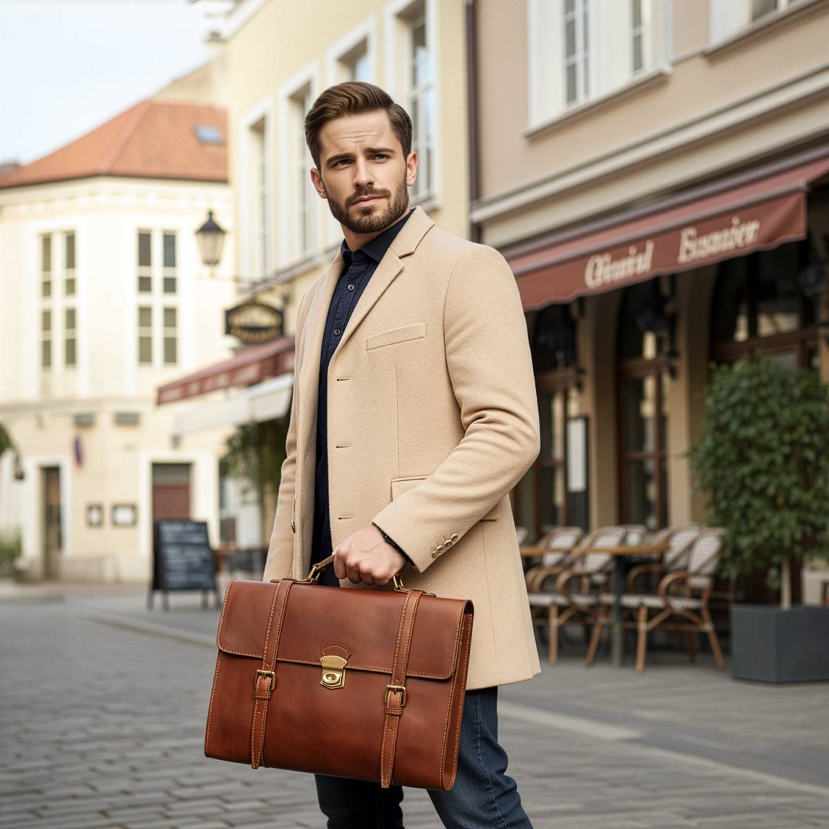 Dokumententasche, die in einen Rucksack aus echtem Leder verwandelt werden kann, ausgestattet mit einem abnehmbaren Schultergurt, der diesen Ordner im zurückgezogenen Zustand in einen Rucksack verwandelt. Ein Fach, Innentasche für Mobiltelefone. Dreifacher Sicherheitsverschluss und zwei Gurte mit seitlichen Schnallen.