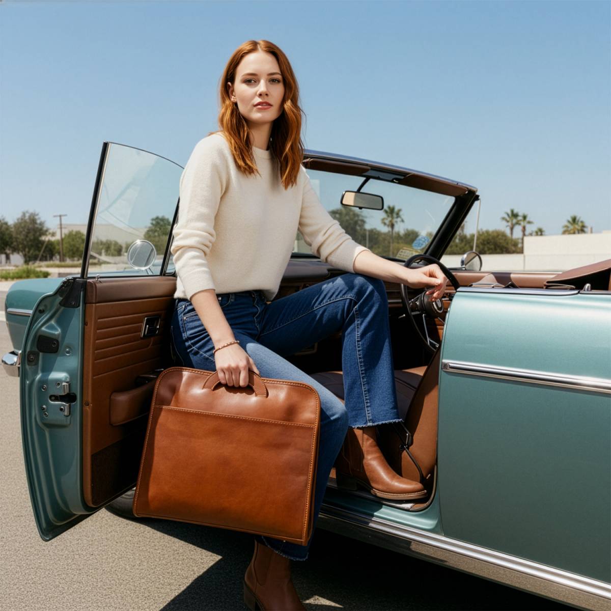Laptop hülle aus edlem Leder, ideal für Laptops und Dokumente. Drei gefütterte Innenfächer, darunter eines für Laptops. Innentasche mit Reißverschluss und eine Tasche auf der Rückseite.