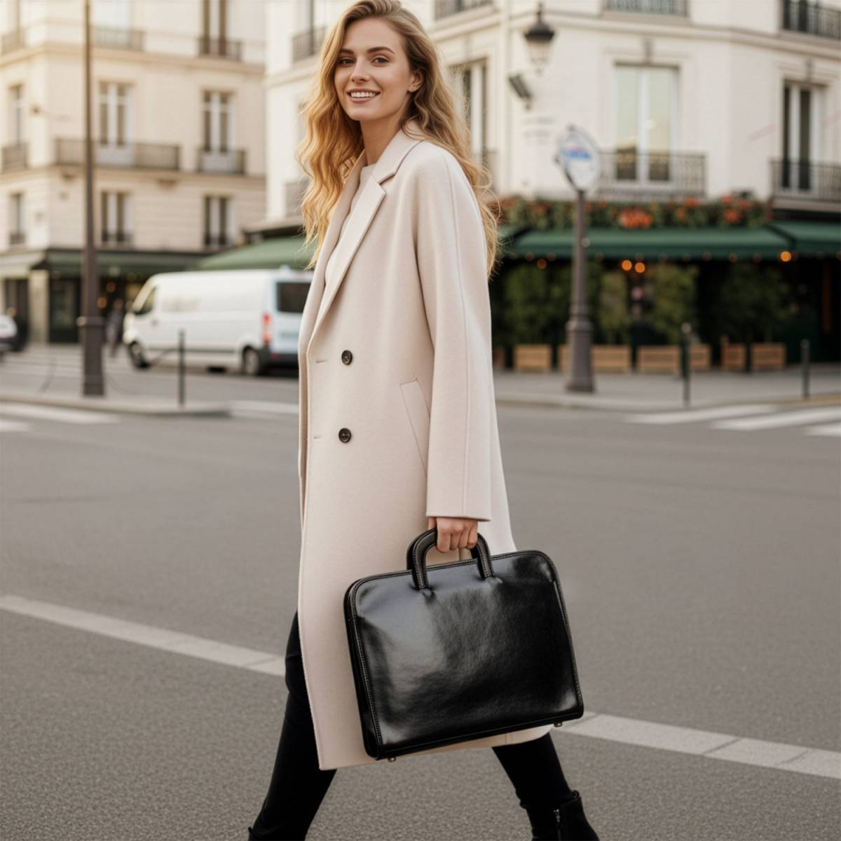 Acquistata questa borsa per il mio macbook pro da 16 pollici ci sta alla perfezione ed è utilizzabile come borsa porta computer con due pratici manici e come custodia per pc essendo molto sottile e con i manici che rientrano. La qualità della pelle è spettacolare e l'ottimo grip della pelle riduce i rischi che laptop e custodia possano scivolare, prezzo molto competitivo!