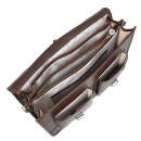 Refined and elegant briefcase that can be turned into a backpack. Made of genuine full grain leather and equipped with a removable shoulder strap that, when attached to the backrest, transforms this briefcase into an elegant backpack. Two compartments made of natural leather and cotton with inner pocket for computer or tablet. Inner pocket for mobile phones. Secure lock with button with key.