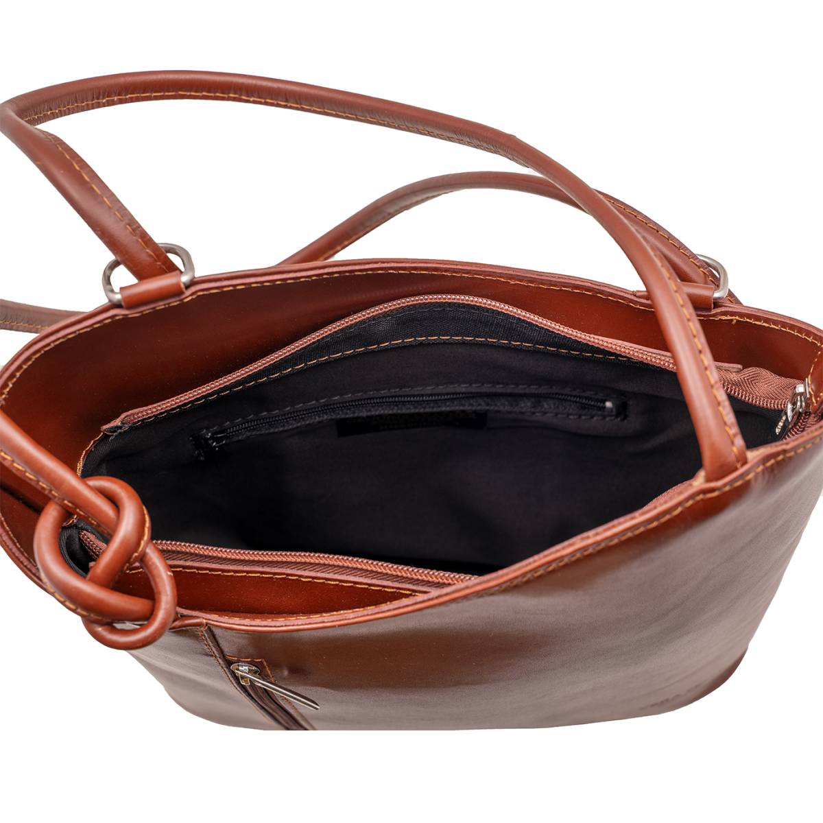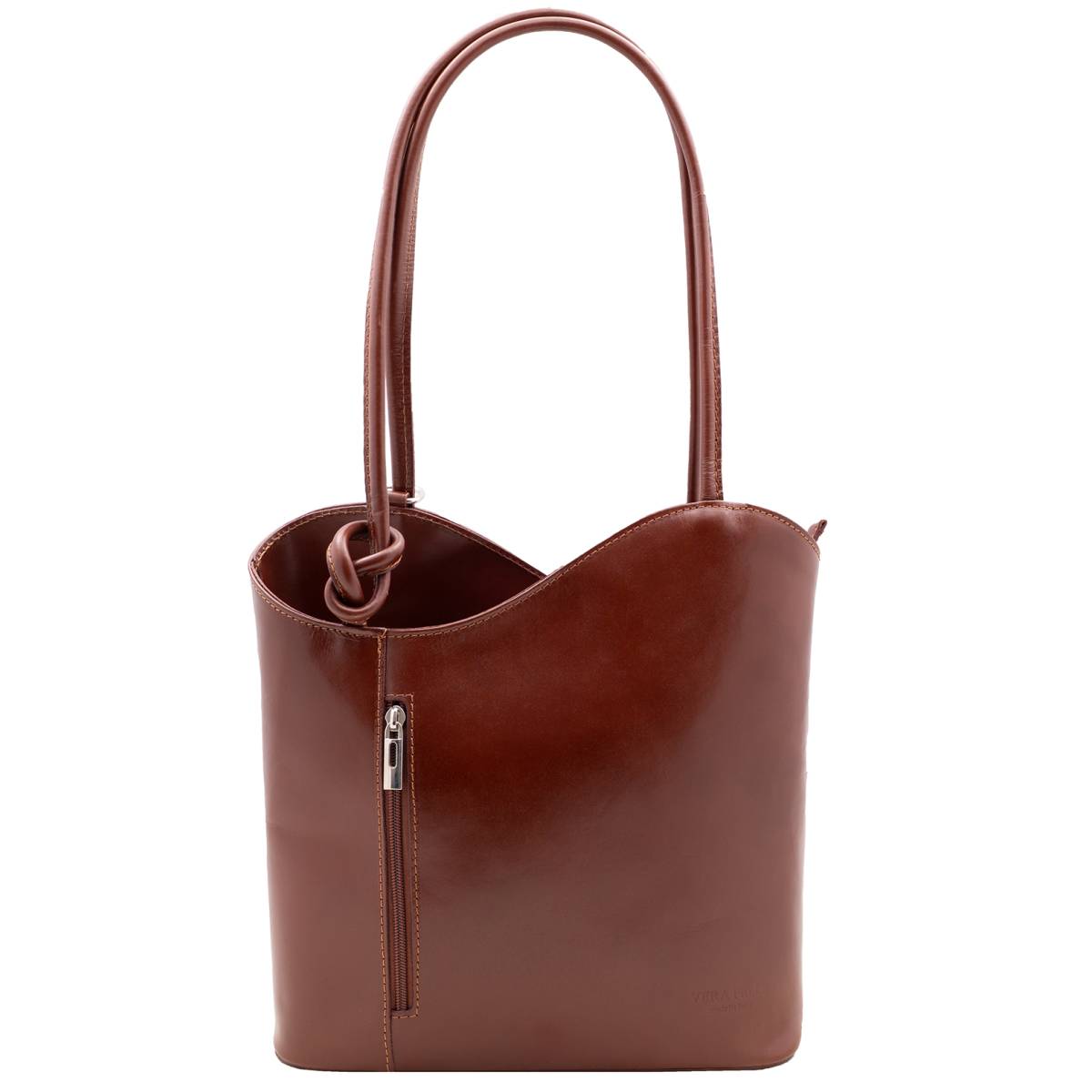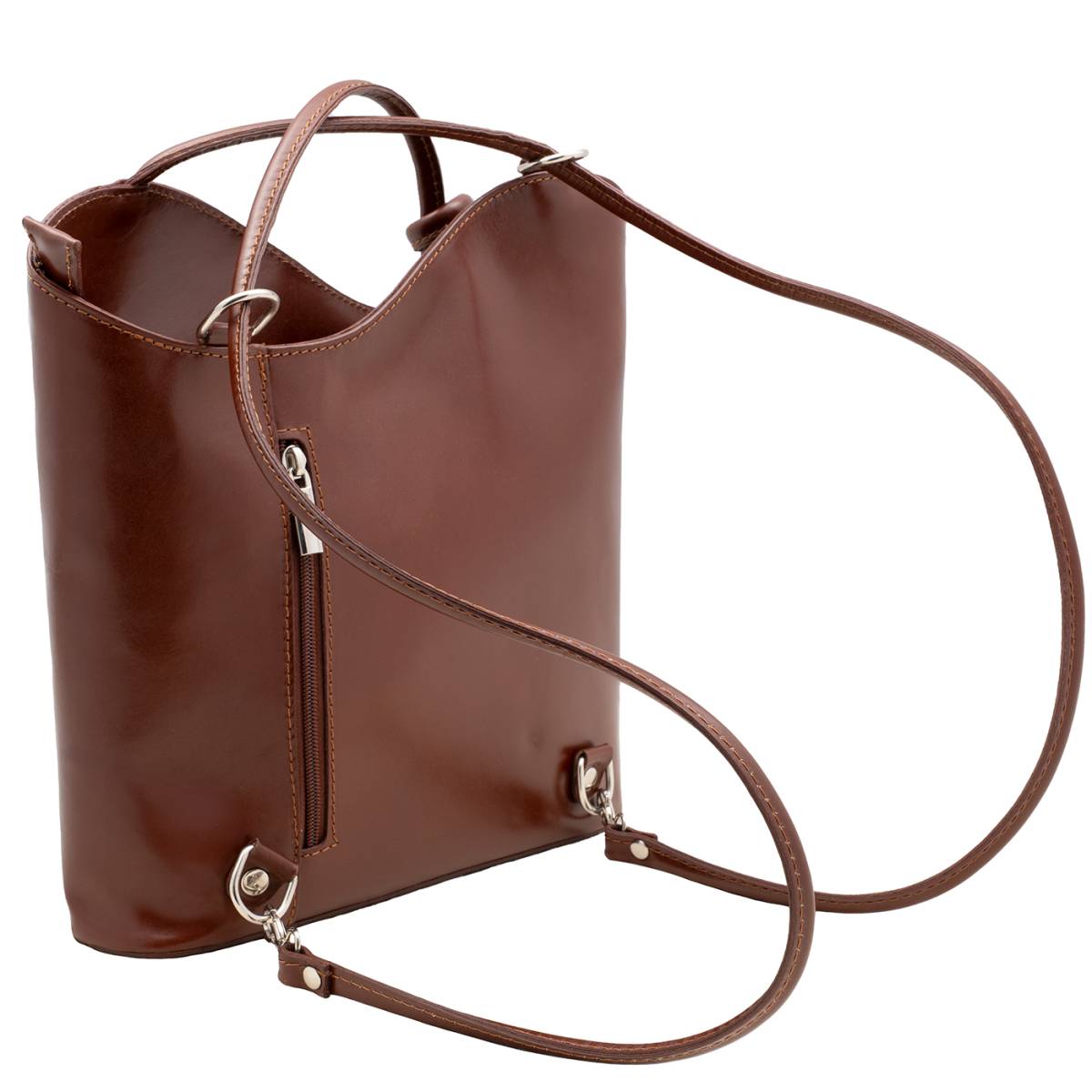 Elegant and refined calfskin leather bag / backpack. Two interior compartments fabric lined, backpack/bag with two large internal pockets and two external pockets. Lightweight and practical bag is the ideal companion for work, school and leisure time.