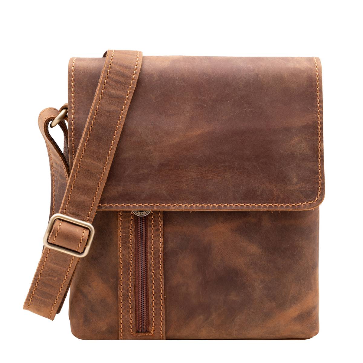 Bolso para hombre con bandolera en piel genuina de búfalo. Bandolera ajustable. Compartimento interno único forrado con tela, bolsillo interior con cremallera. Bolsillo frontal y trasero con cremallera.