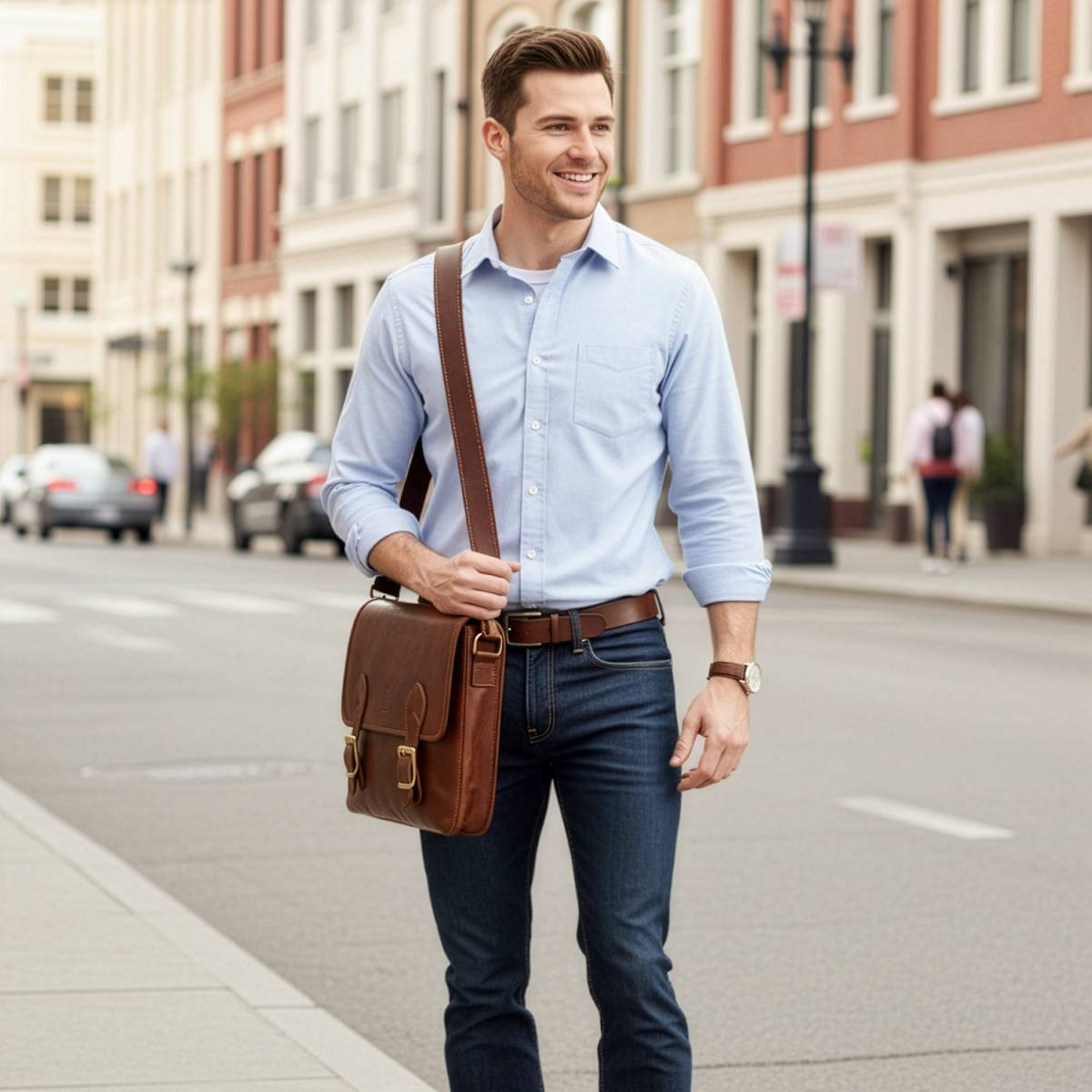 Elegante bolso tipo bandolera elaborado en piel de plena flor. Dos compartimentos internos con bolsillo con cremallera, porta bolígrafos y porta móvil, rematados internamente en piel natural. Un bolsillo trasero con cremallera. Correa de hombro ajustable. Bolso ideal para transportar un pequeño ordenador portátil, una tablet y objetos cotidianos como smartphone, carteras, llaves etc.... Diseño fino, clásico, sencillo y atemporal.