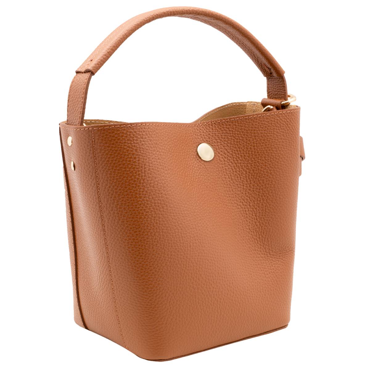 Valódi kalapált bőrből készült vödörtáska felső fogantyúval és hosszú, állítható, levehető vállpánttal. Egyetlen rekesszel, praktikus, levehető belső zsebbel, amely a cipzáras záródásnak köszönhetően tökéletes fontos tárgyak, például kulcsok vagy pénztárcák számára. Elegáns és időtlen, minimalista megjelenése és kompakt mérete alkalmassá teszi ezt a táskát mind a hétköznapi, mind a formális megjelenéshez, tökéletes egy pihentető sétához vagy egy fontos eseményhez.