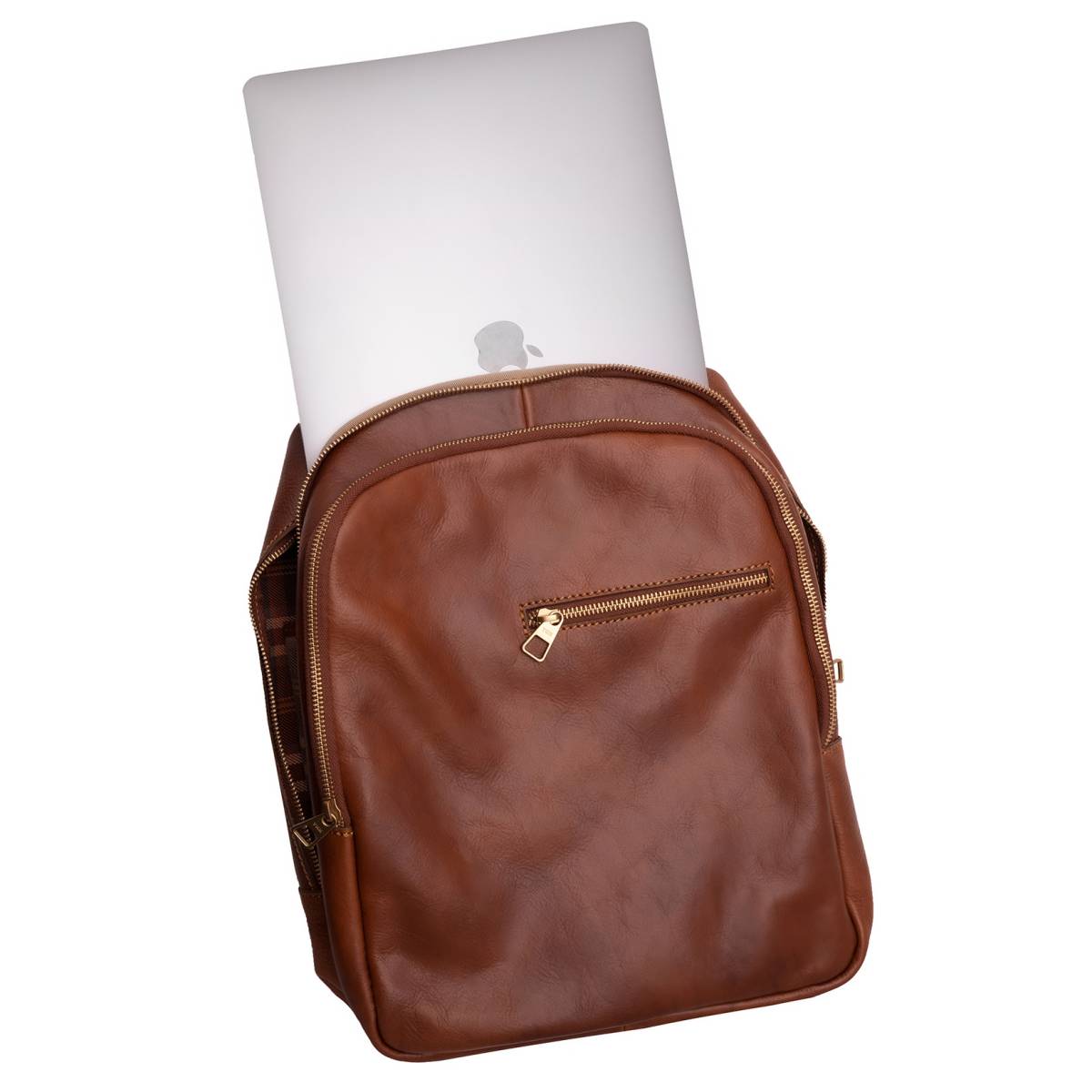 Elegante en ruime rugzak gemaakt van volnerfleer. Twee met katoen gevoerde compartimenten, intern laptopvak. Praktische binnen- en buitenzakken. Verstelbare bandjes en hoofdsluiting met metalen ritssluiting.