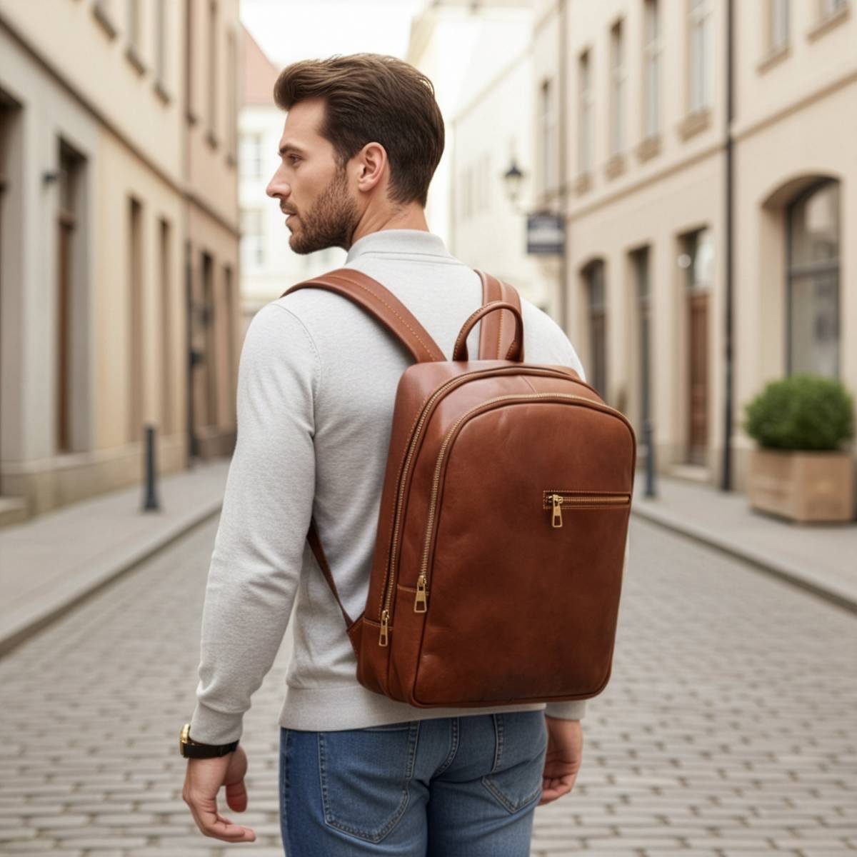 An Italian leather backpack
