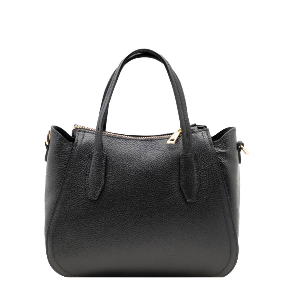 Dameshandtas van echt gehamerd leer. Eén ruim compartiment met stoffen voering, een binnenvak en een verstelbare, afneembare schouderriem. Praktische maar elegante handtas. De minimalistische look en het compacte formaat, gecombineerd met het lichte gewicht, maken deze tas geschikt voor zowel een casual als een meer formele look, perfect voor een wandeling in je vrije tijd of voor een belangrijke gelegenheid.