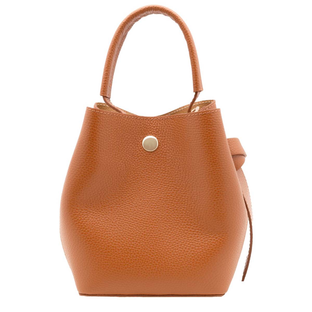 Bucketbag van echt gehamerd leer met een handvat aan de bovenkant en een lange, verstelbare en afneembare schouderband. Eén compartiment, compleet met een praktisch afneembaar binnenvak dat dankzij de ritssluiting perfect is voor belangrijke spullen zoals sleutels of portemonnee. De sluiting is voorzien van een magnetische drukknoop. Elegant en tijdloos, de minimalistische look en het compacte formaat maken deze tas geschikt voor zowel casual als formele outfits, perfect voor een ontspannen wandeling of een belangrijke gebeurtenis.